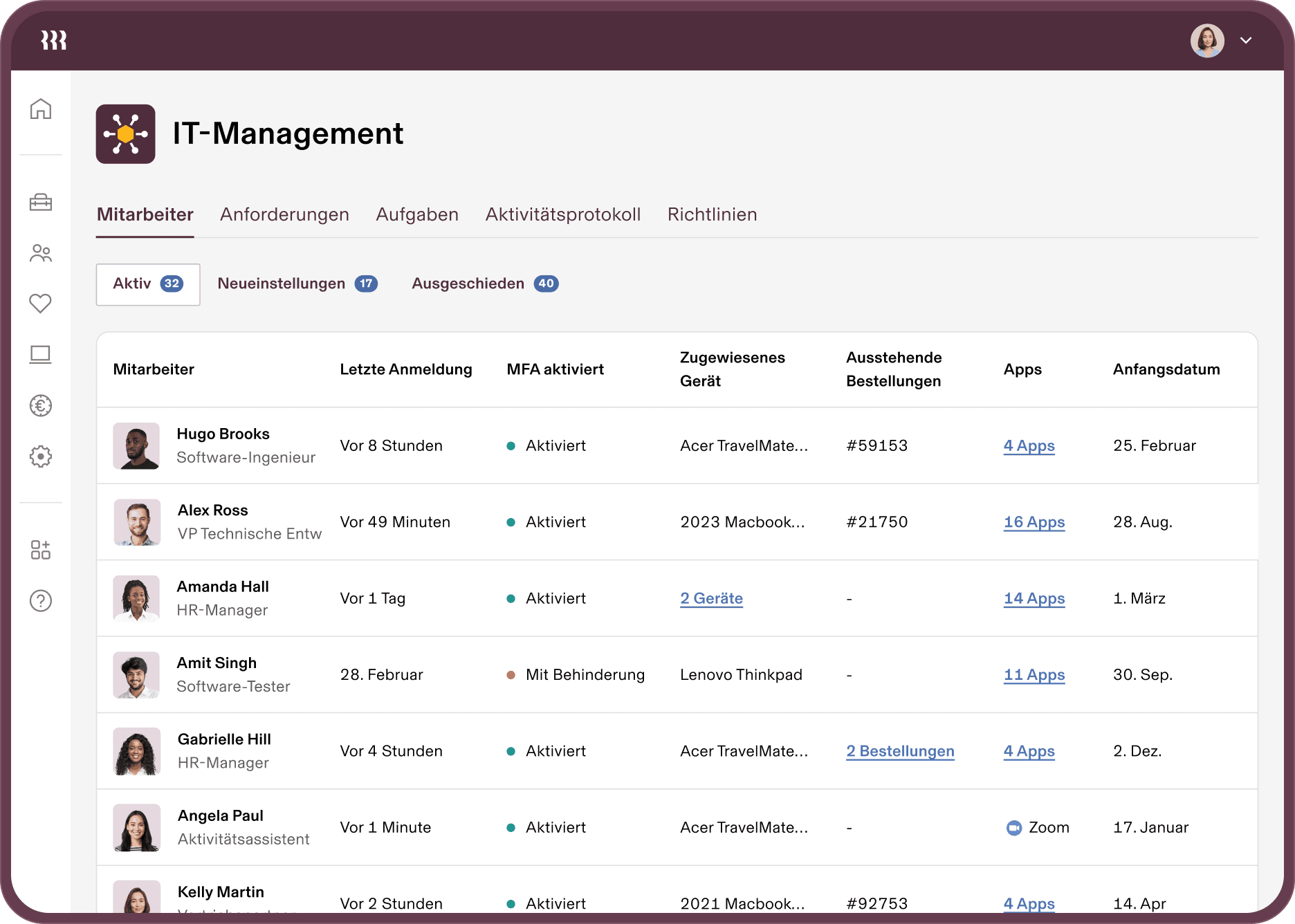 Rippling kombiniert ein HRIS und einen IdP auf einer Plattform und ermöglicht so eine stärkere Sicherheit mit detaillierter Zugriffskontrolle über den gesamten Benutzerlebenszyklus hinweg.