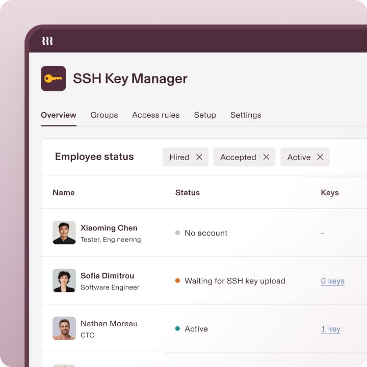 Distribute just-in-time SSH keys based on user roles and automatically revoke access during offboarding to prevent security gaps.