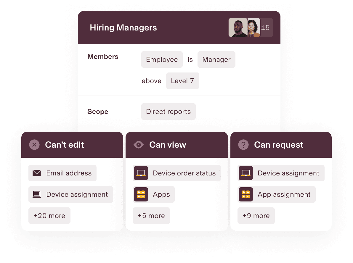 Provision apps. Assign devices. You set the rules for who can make and approve requests, simplifying small changes while flagging big ticket items for review.