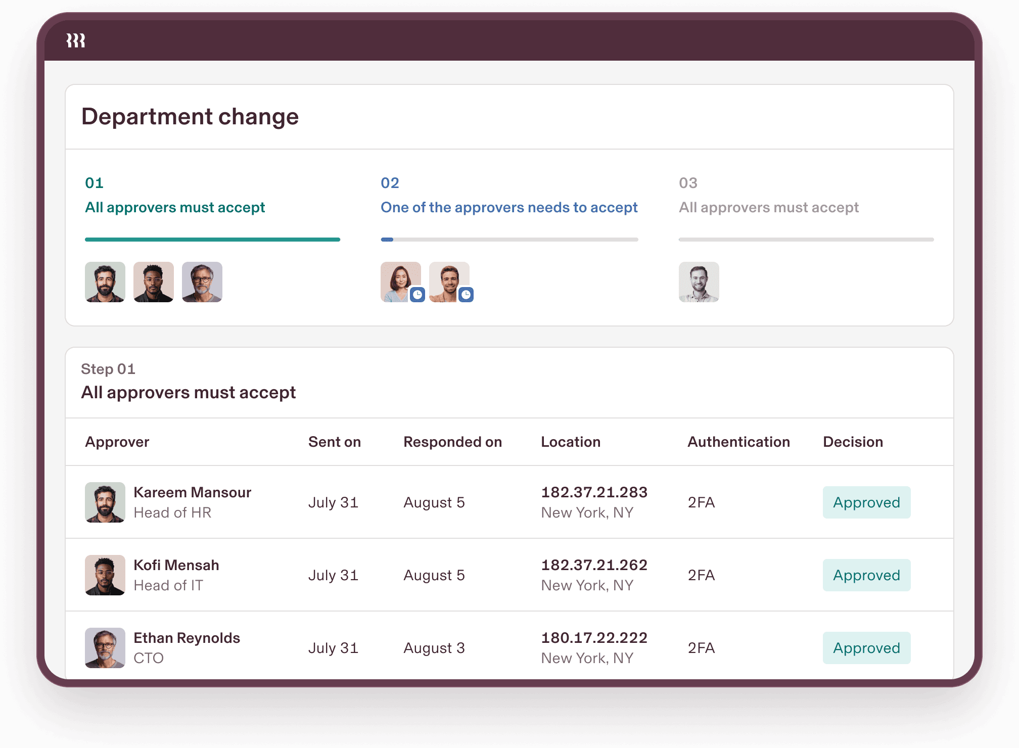 Build approval chains that respond to the dynamics of your business. Rippling supports multi-approver logic and can handle complex situations, like re-routing a request if its primary approver is on vacation.