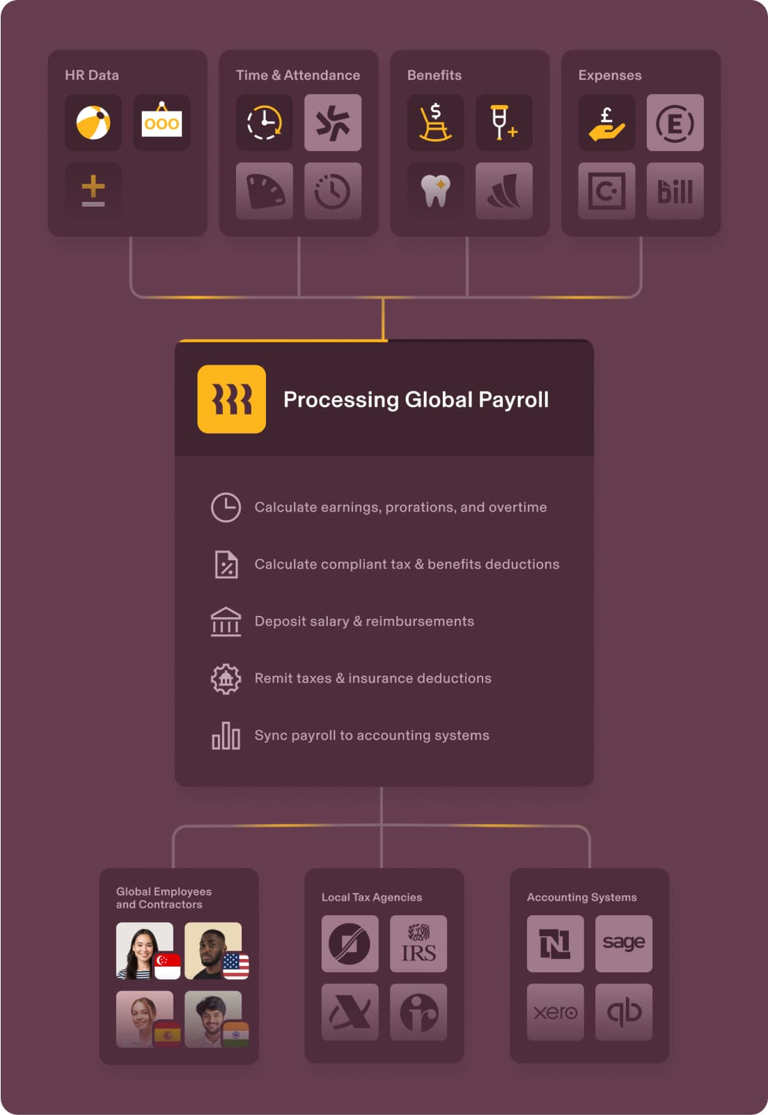 A simple, intuitive flow, paired with time-saving automation and integrations, makes global pay runs on Rippling faster and reduces errors.