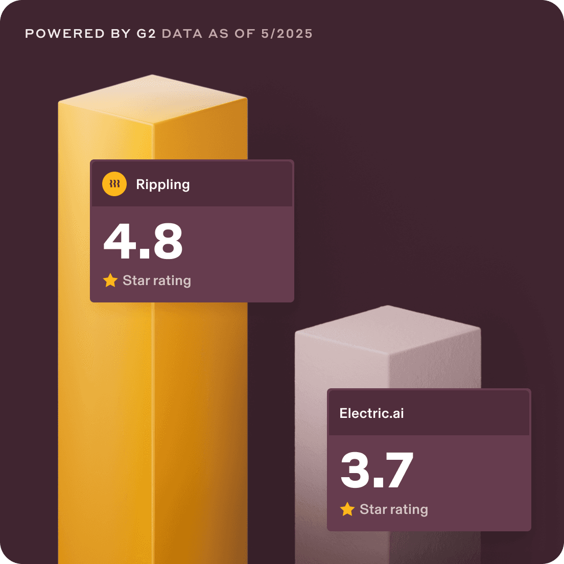 Electric.ai relies on service reps, tickets, and spreadsheets. Rippling auto-provisions accounts, devices, and permissions—zero tickets, zero lag.