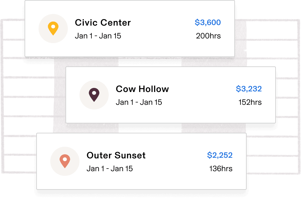 Track where your employees' time goes and the cost of that time—by location, client, task, and more.